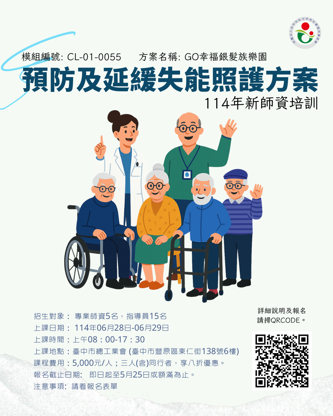 預防及延緩失能照護方案 指導員培訓(本課程師資可全