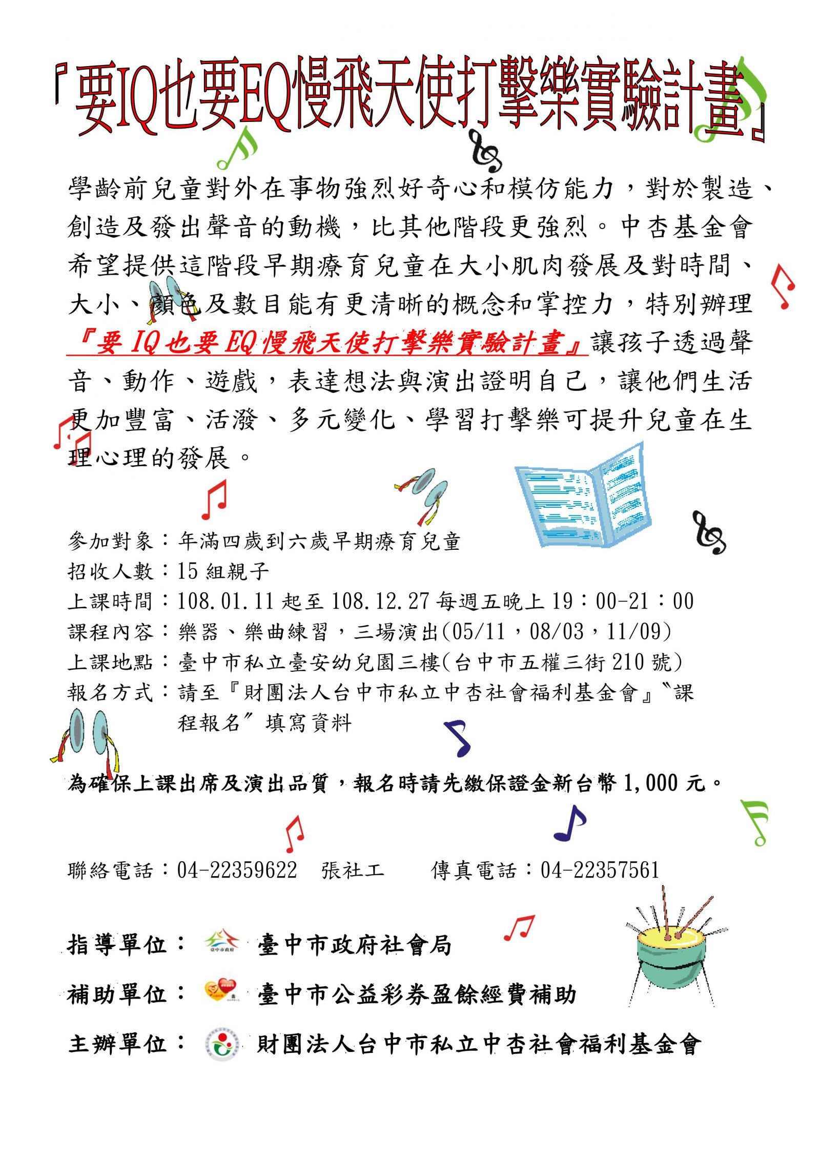 慢飛天使打擊樂團活動計畫(報名踴躍已超出,請勿再報名。已報名者,近期通知。謝謝!)