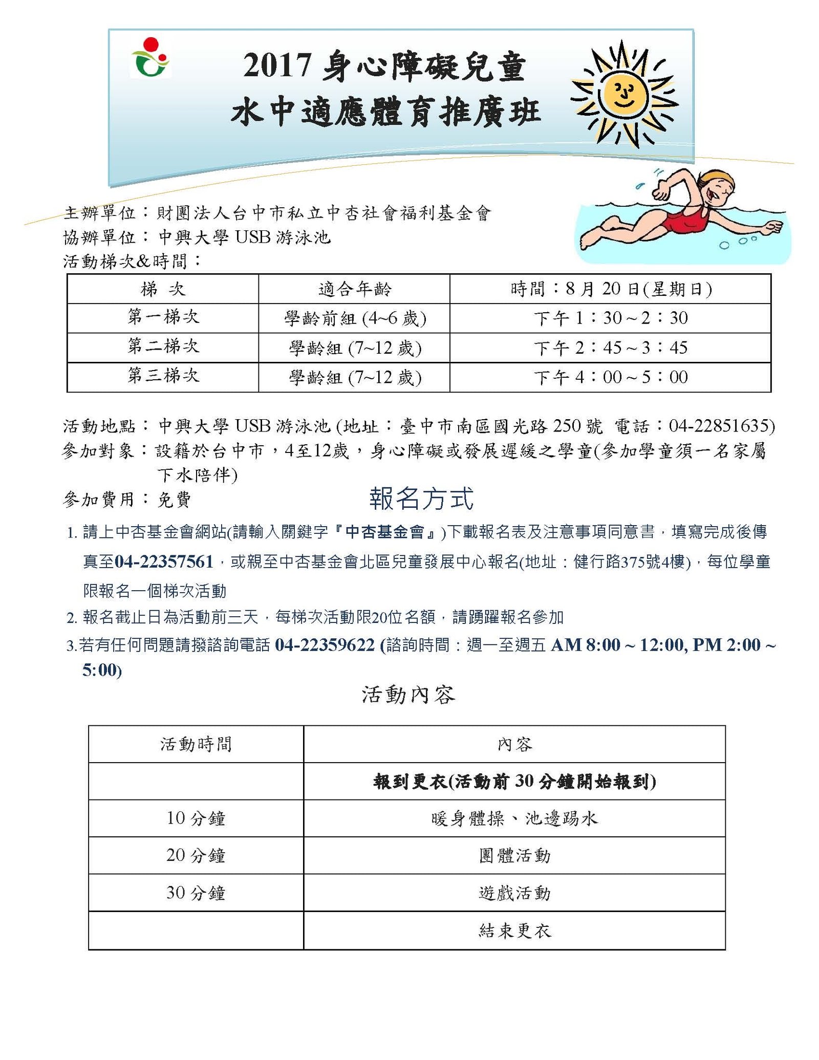 2017身心障礙兒童水中適應體育推廣班