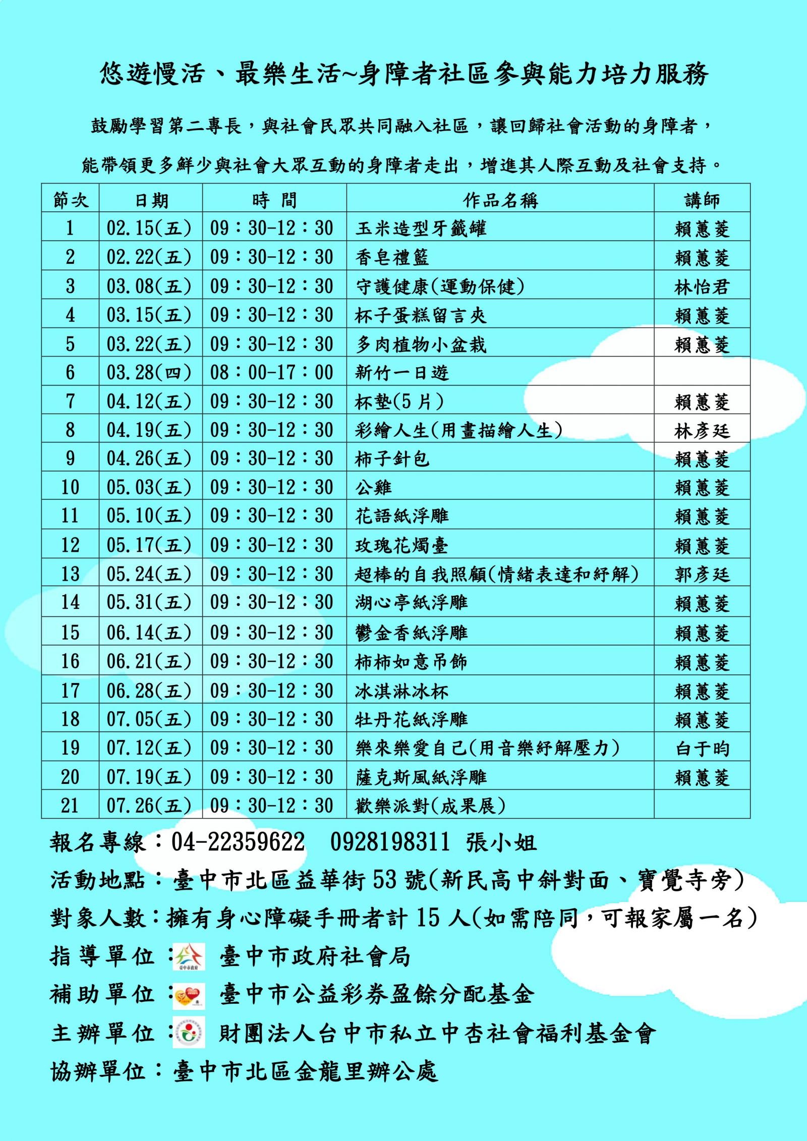 歡迎有興趣的身心障礙朋友相招來報名哦!更歡迎轉傳給朋友。