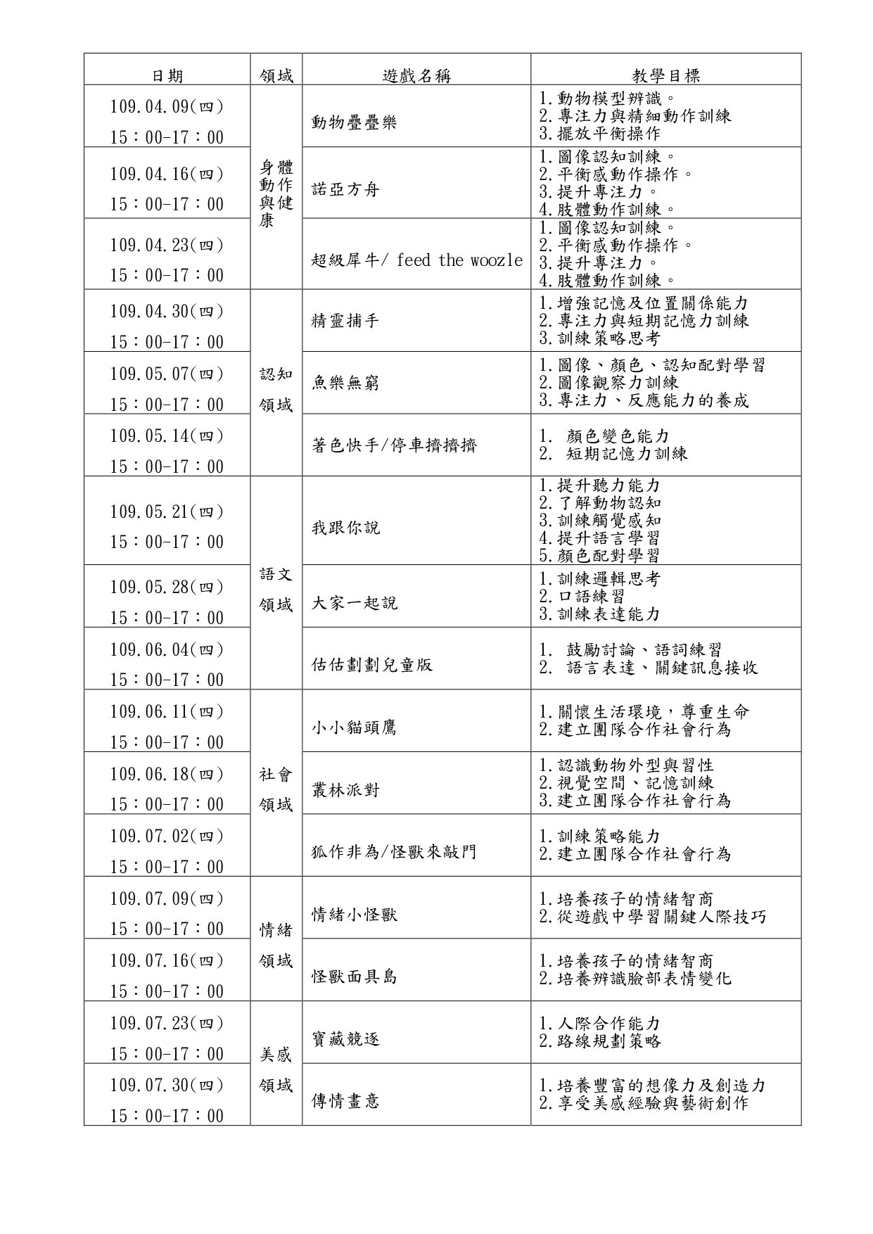 桌遊活動設計也能依據孩子的需求與社 會文化的期待,延伸至六大領域:身體動作與健康、認知、語文、社會、情緒和美感,符合幼兒的生活經驗學習,以提升幼兒發展六大能力的成長,以幫助幼兒健全發展。