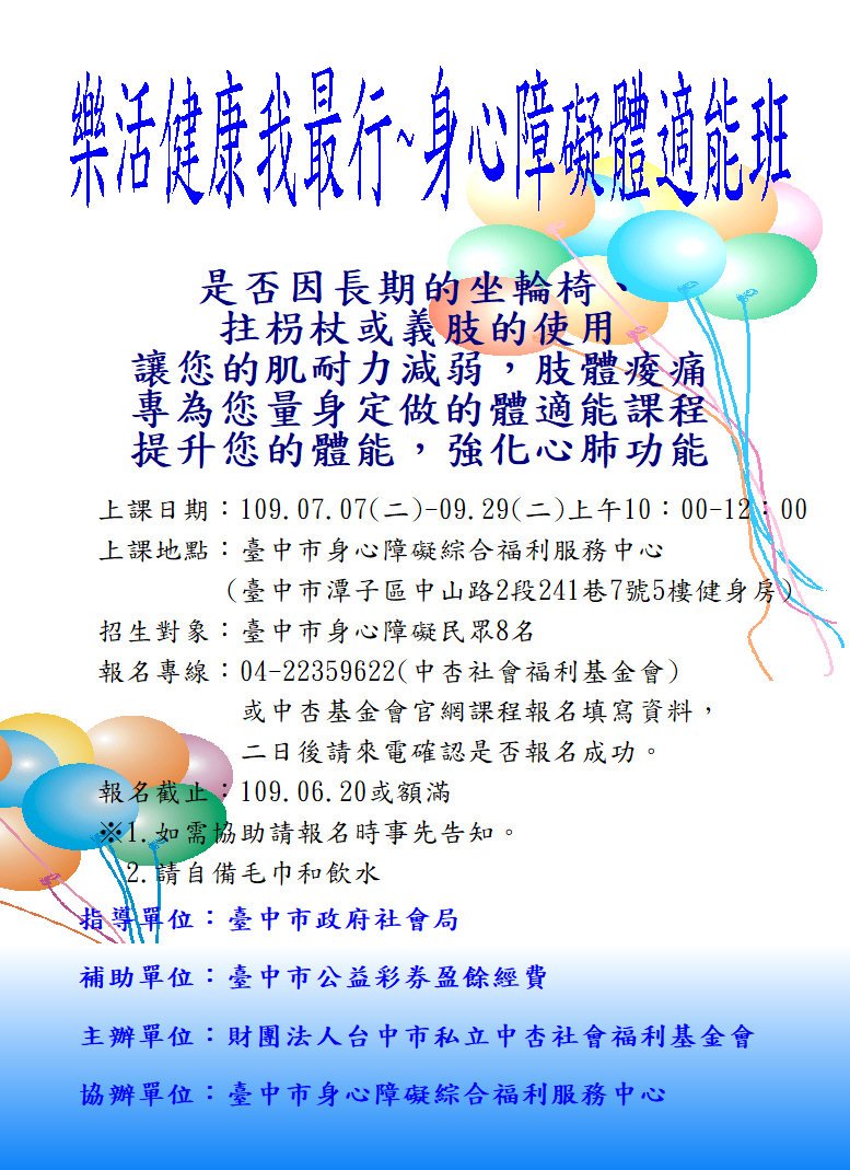 樂活健康我最行~身心障礙者體適能班