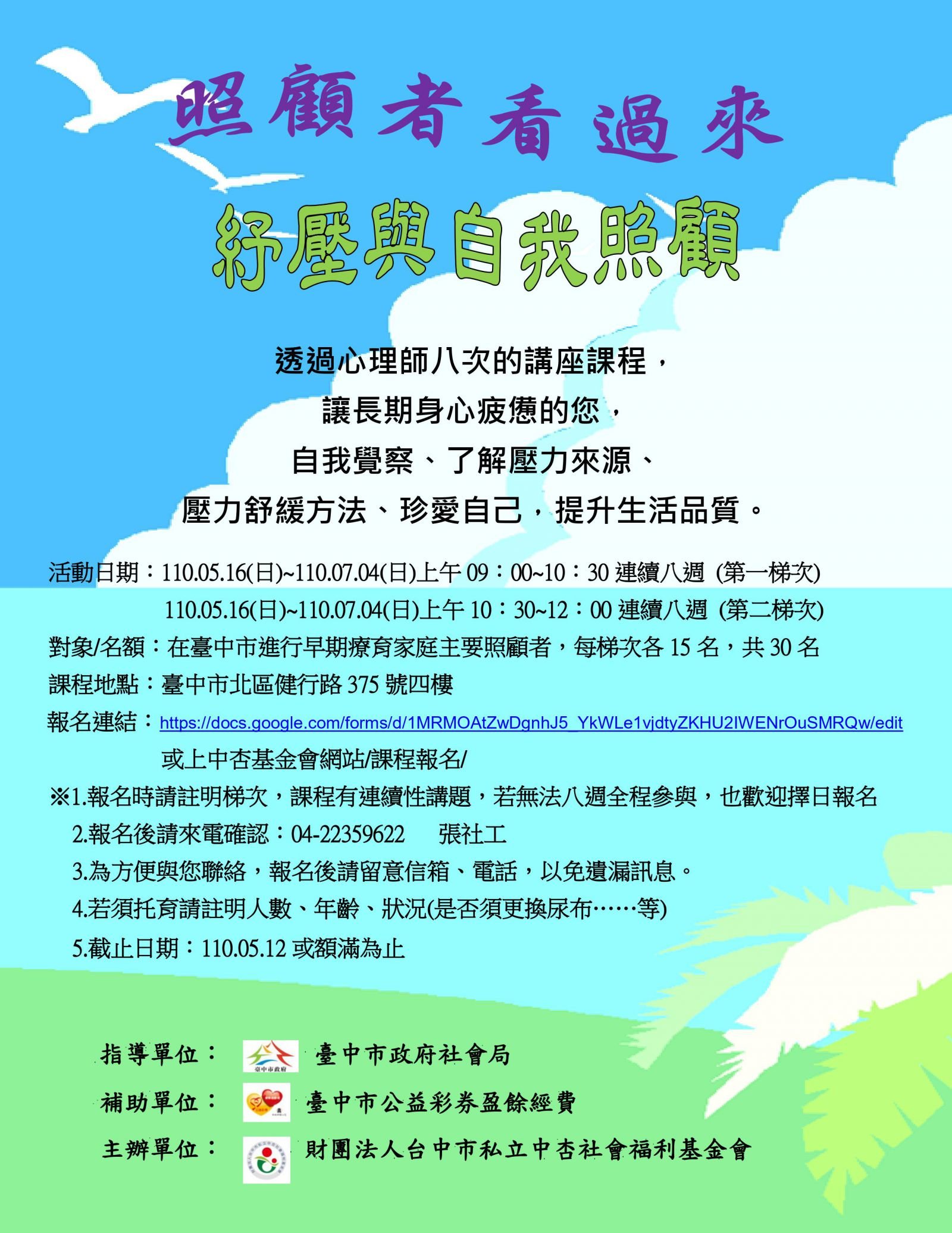 報名後請來電確認:04-22359622 張社工