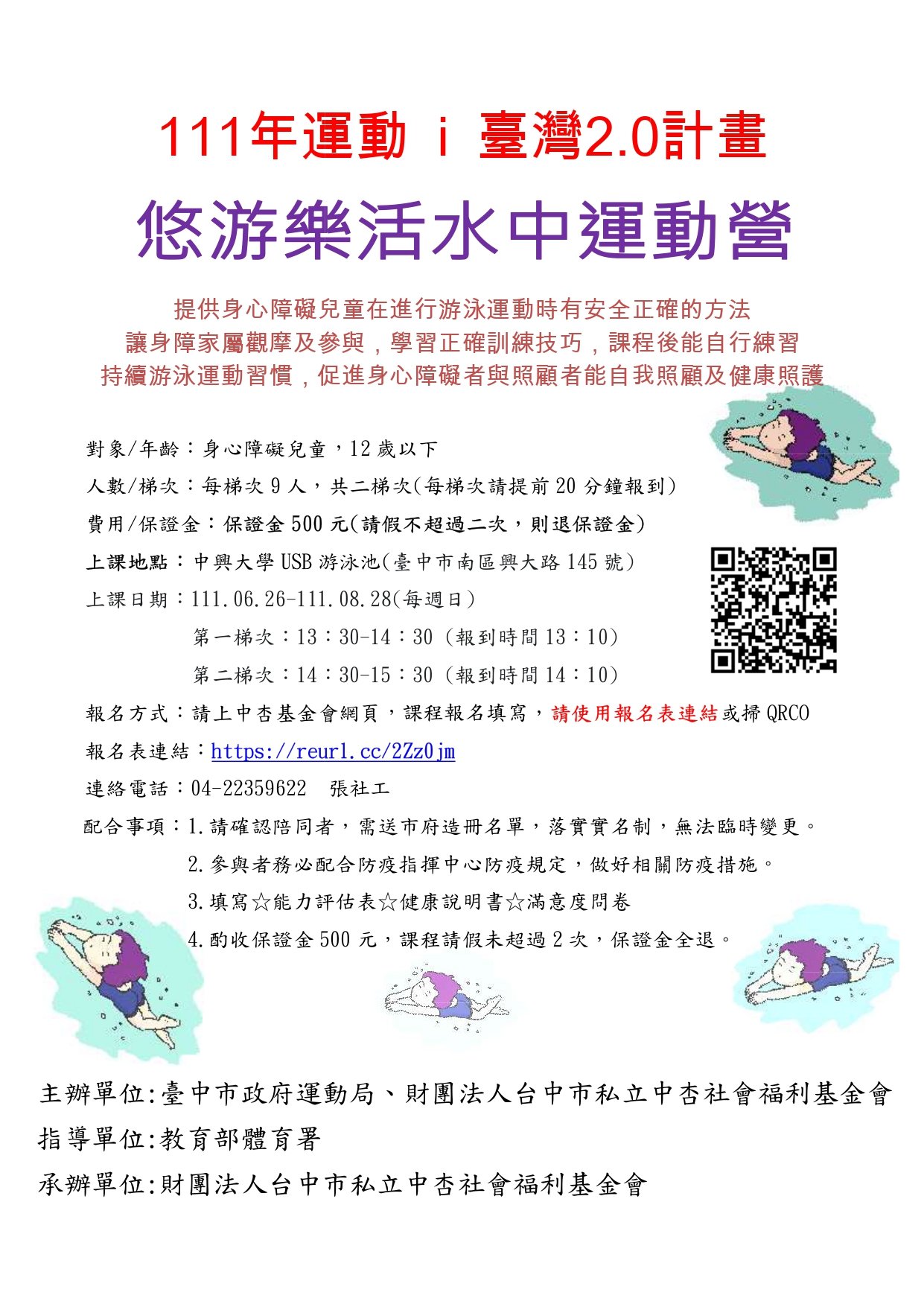上課地點:中興大學USB游泳池(臺中市南區興大路145號)