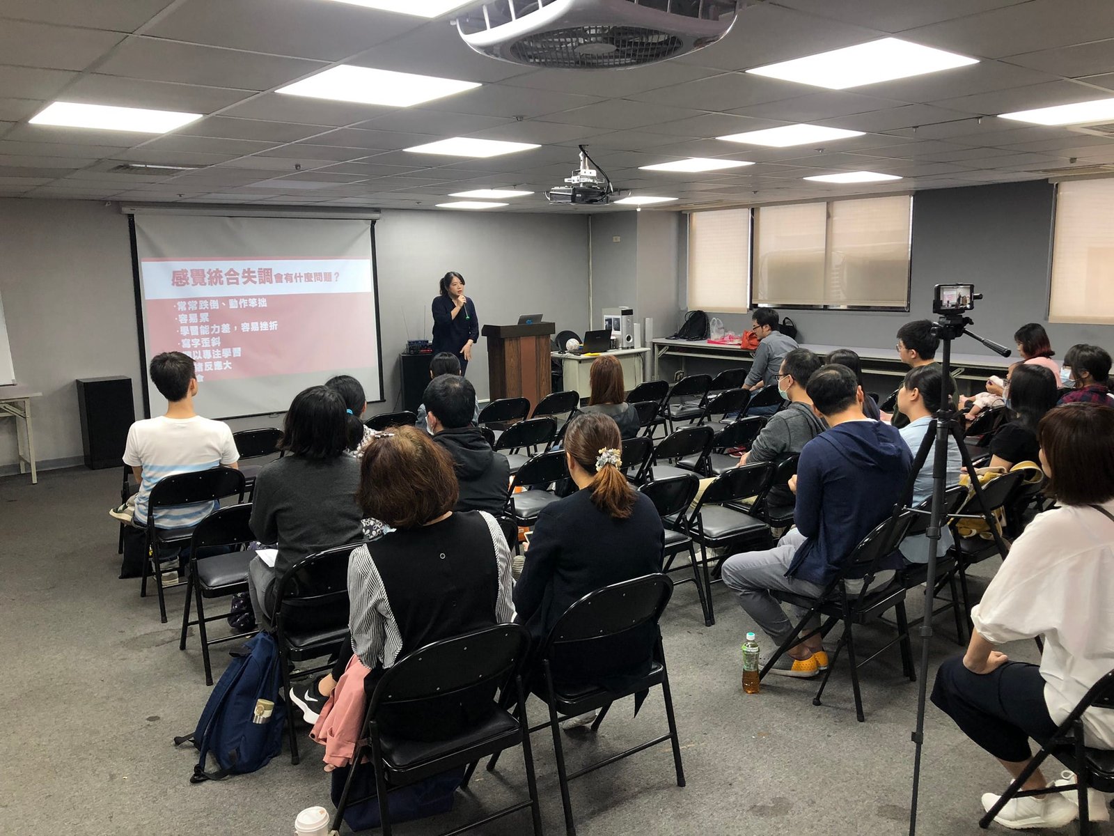 為提升主要照顧者對發展遲緩孩童的認識,以及了解如何藉由療育課程,將訓練帶入日常生活中。在演講(一)中,邀請治療師分享實務經驗,針對發展遲緩的兒童,藉由早期療育的課程,使家長學習在家中能夠協助孩子的居家活動或遊戲,不僅能夠促進親子互動,還能以家庭為中心,促進兒童發展。演講(二)則藉由醫師的醫學專業與臨床經驗,用輕鬆的方式帶領主要照顧者認識早期療育,同時,了解可用的