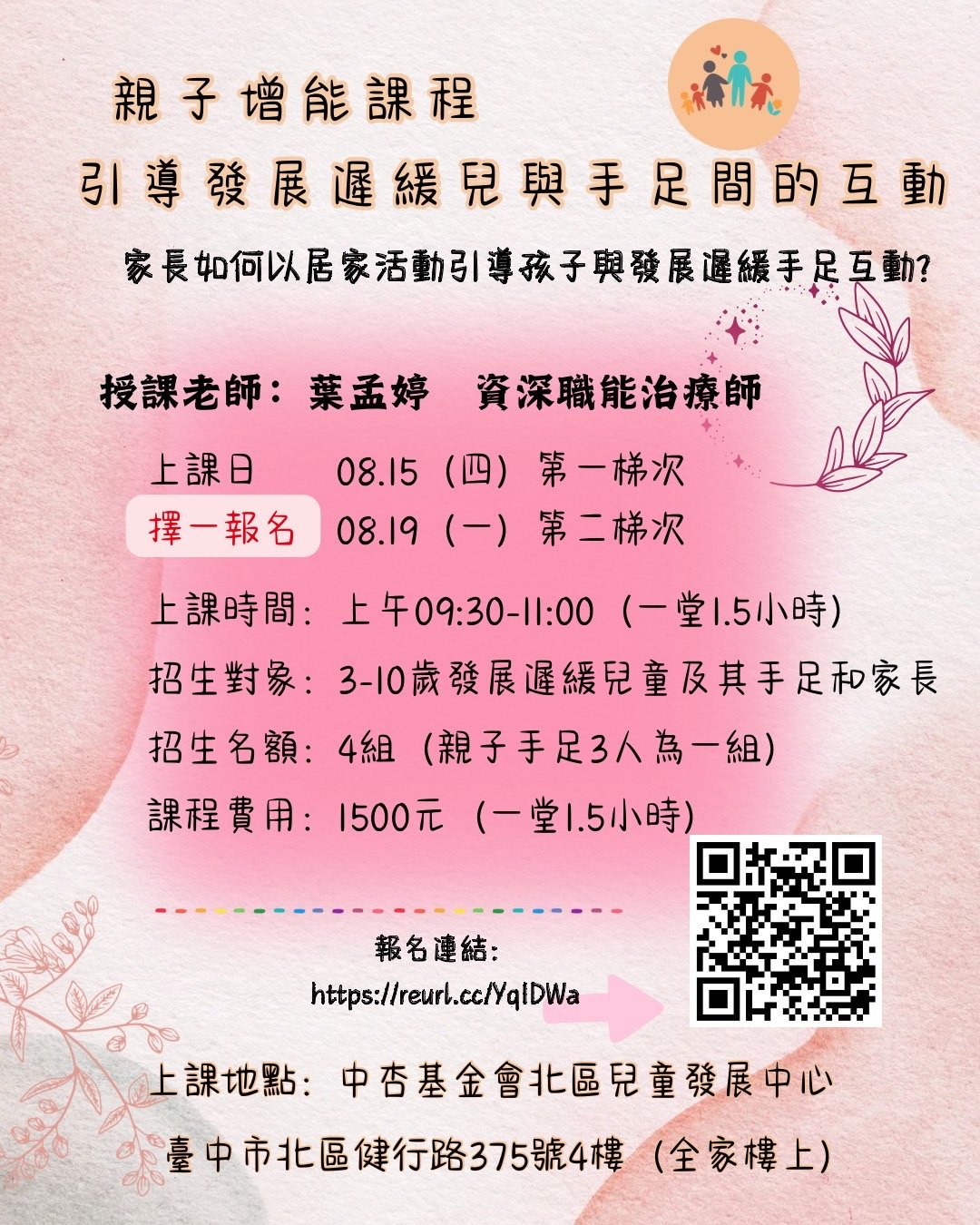親子增能課程 - 引導發展遲緩兒童與手足間的互動