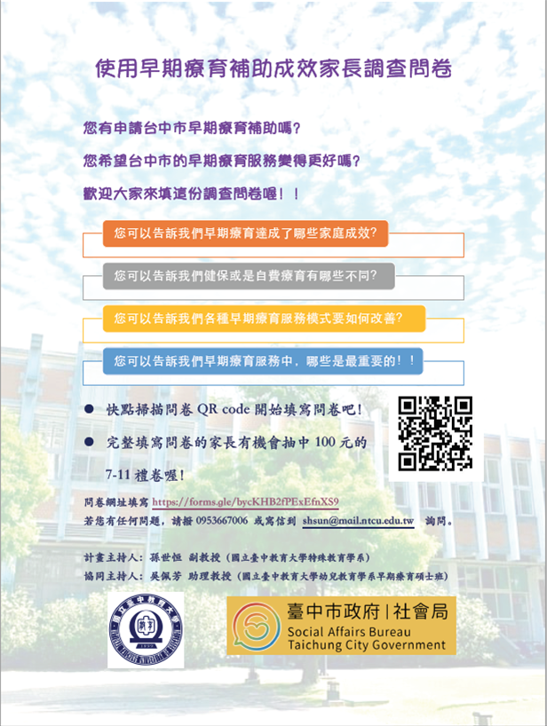 敬邀使用早期療育補助家長填寫成效調查問卷