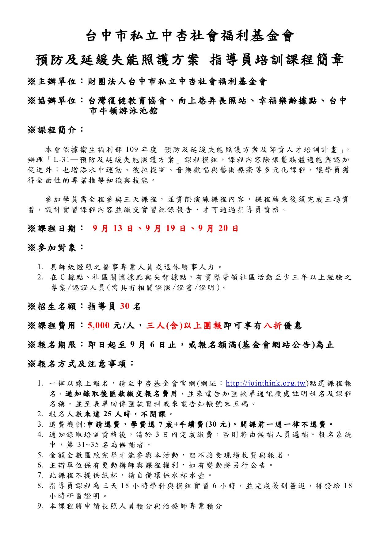預防及延緩失能照護方案 指導員培訓課程報名