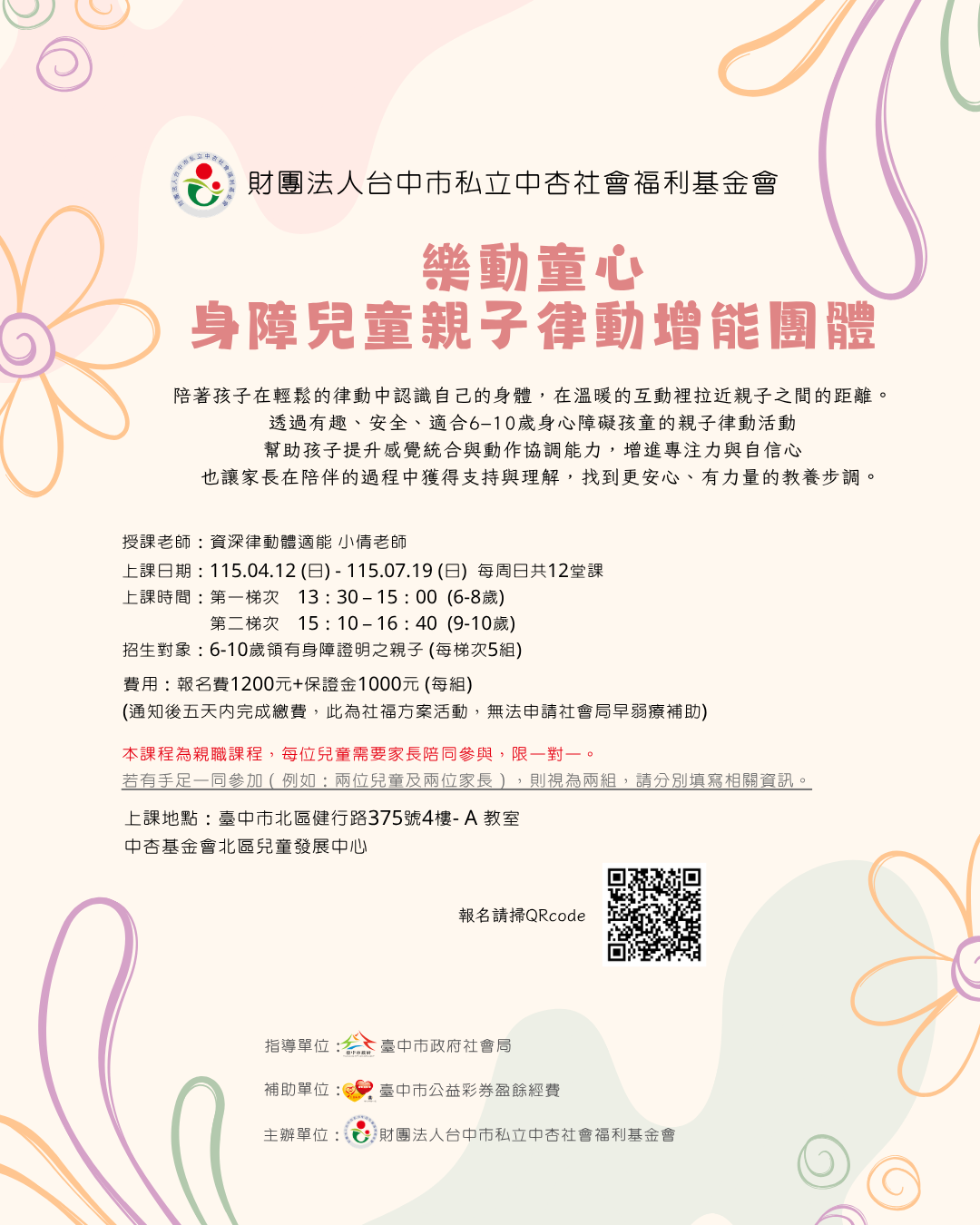 「樂動童心」透過親子律動活動,陪伴孩子認識身體、提升動作與專注能力,也讓家長在參與過程中,看見孩子的成長與更多可能。