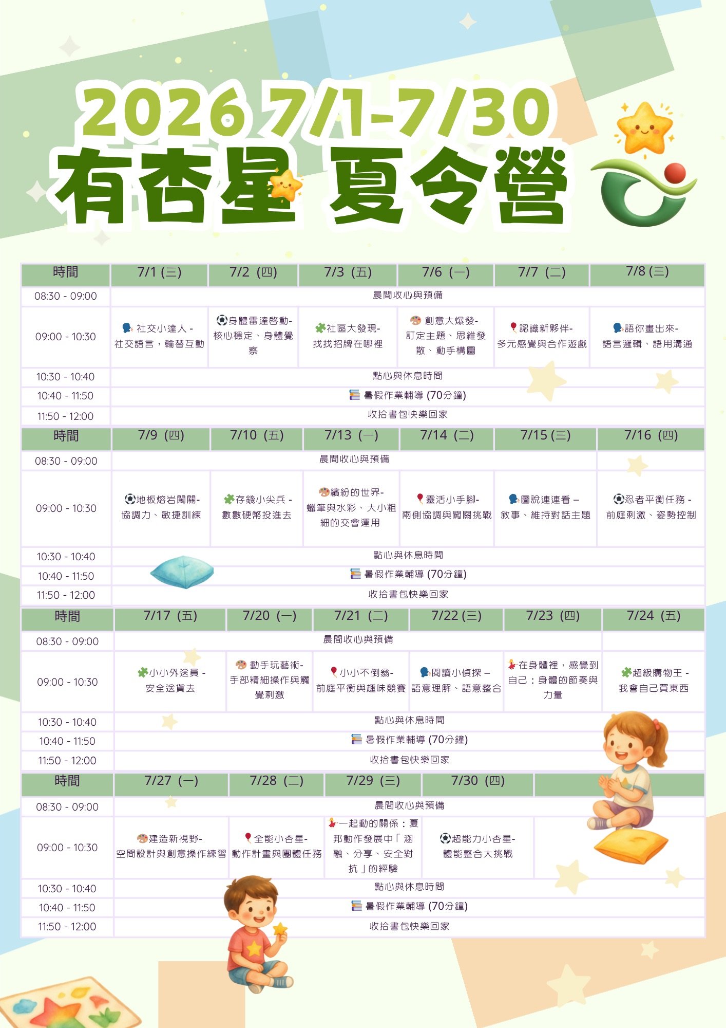 活動時間:7/1-7/30 (平日8:30-12:00)